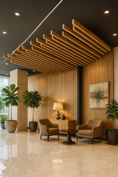 Este sistema permite desarrollar espacios contemporáneos y sofisticados, manteniendo una imagen cálida y natural, pero con la tranquilidad de un material estable, liviano y durable. Al prescindir de barnices, selladores o tratamientos periódicos, se convierte en una alternativa altamente eficiente tanto para proyectos residenciales como comerciales, hoteleros y corporativos.